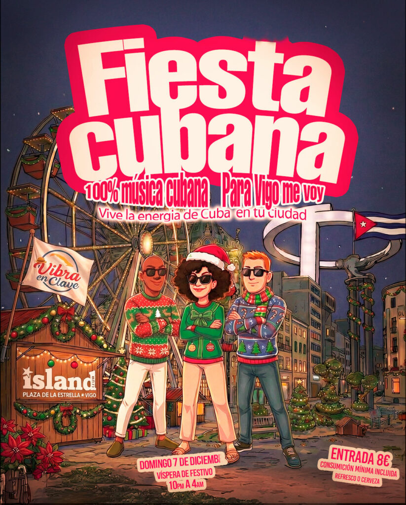 Este domingo 7 de diciembre, víspera de festivo, te proponemos un plan perfecto para disfrutar del puente en Vigo: una Fiesta Cubana organizada por Galidancia y Locos por ir a Cuba en la discoteca Island (Plaza de la Estrella).